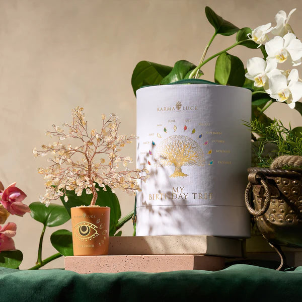 Blessings abound for all who lead with a caring heart. Specially designed for all the warm and supportive souls born in February. this beautiful birthday tree is adorned with Amethyst leaves and is painted with an Evil Eye for added protection. Amethyst. the stunning birthstone of February. is beloved for its soothing qualities and its serene nature – much like the people born in this winter month. Keep your loved one swimming in peace and calm by gifting them the Compassionate Vibration Amethyst February Birthday Tree.