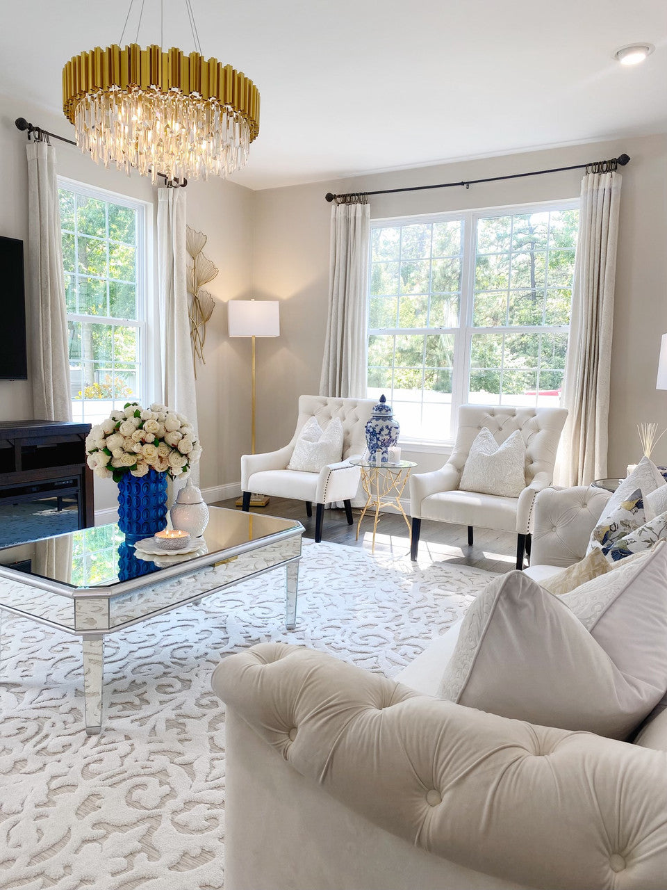 English White Roses in Blue Textured Vase – tasty